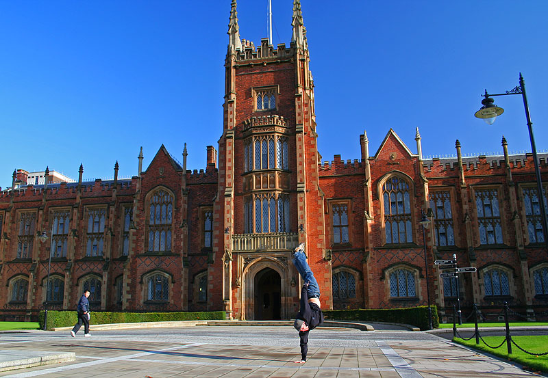 The Northern Ireland one-hander, in front of Queen's University in Belfast.