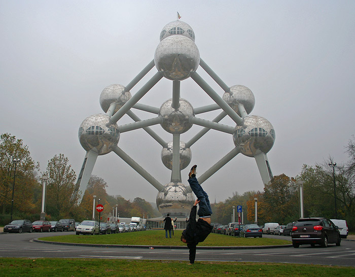 The Belgium one-hander, in front of the Atomium, built for the 1958 Brussels World Fair.