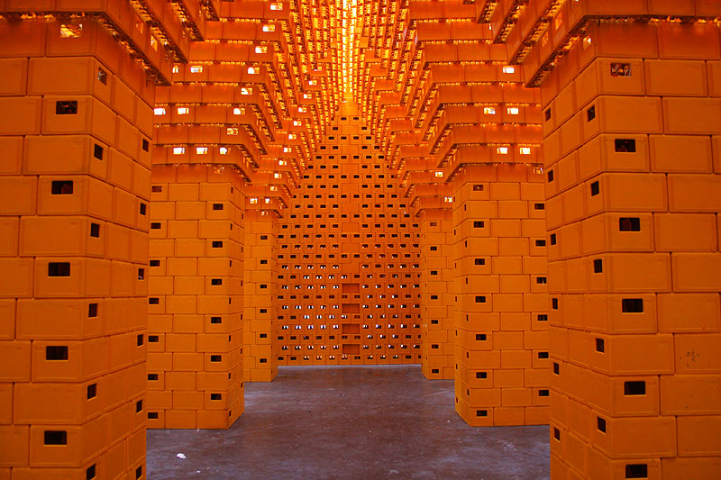 A temporary nightclub, made entirely from plastic beer crates.