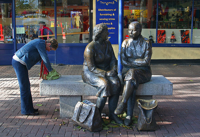 A statue known as the "hags with bags". Third hag, unknown.