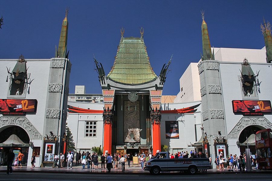 Grauman's Chinese Theatre on Hollywood Boulevard, in front of which lie the signatures and handprints of celebrities. Exciting stuff huh.