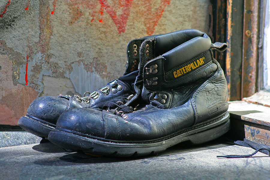 Just a pair of delapidated work boots, sitting on one of the world's most famous and glamourous streets. I liked the juxtaposition.