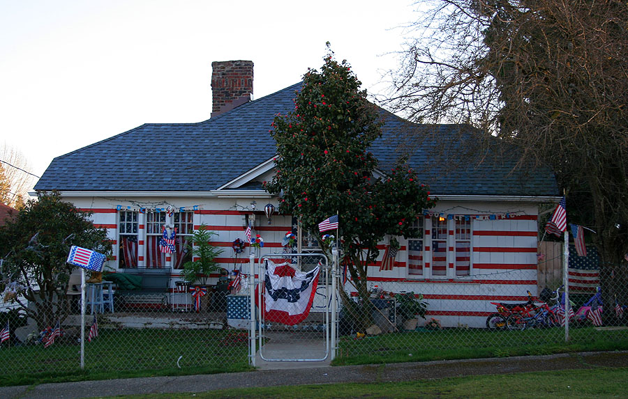 The owner of this house has a full-face colour tattoo of the American flag. Wow. Americans are well-known for being patriotic, but come on, seriously?