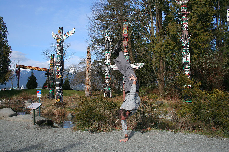 The Vancouver one-hander, in front of the famous Totem Poles in Stanley Park.