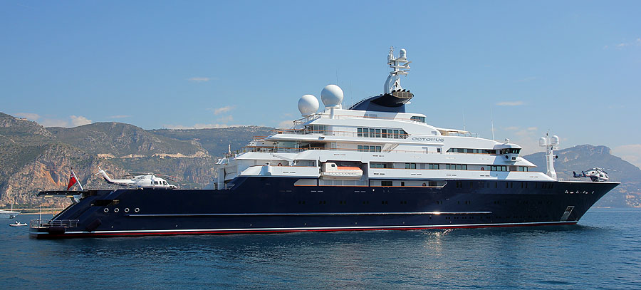 Octopus, 126m, the world's 9th largest superyacht, owned by Microsoft CEO Paul Allen. Two helicopters. Two submarines. And no bank loan.