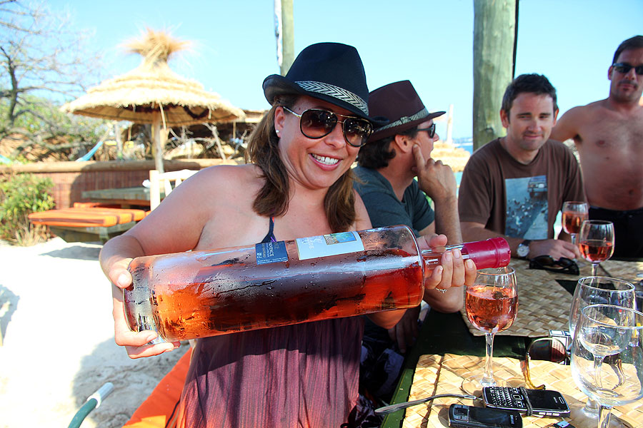 A friend, Tanya, pours us some rosé wine from the 3L bottle. I'd joined the group later, but by the end of the day, 9 bottles had been consumed. Ridiculous yachties with ridiculous thirsts and too much disposable income.