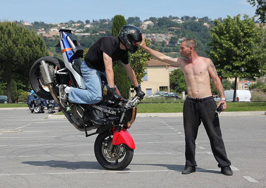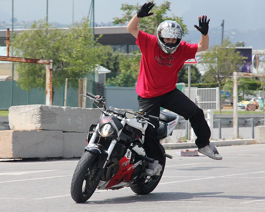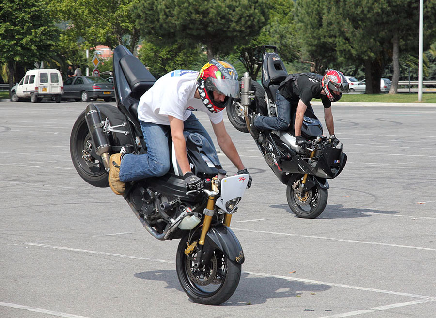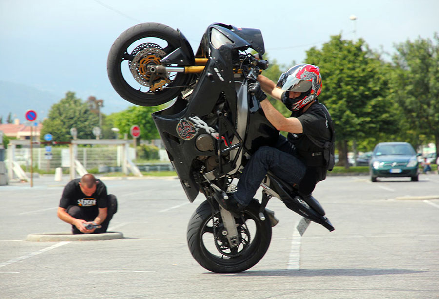 Motorcycle break-dancing.