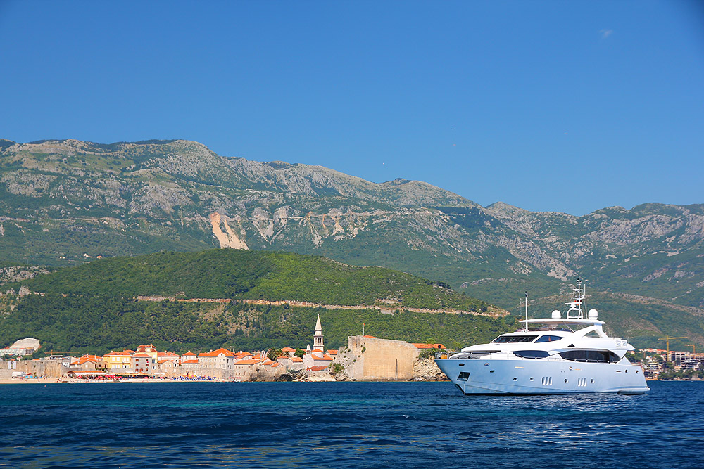 At anchor in Budva, Montenegro.