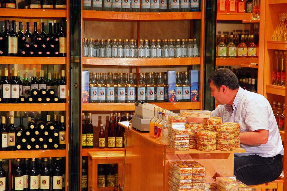 One of a thousand similar stores in Corfu, selling the island's kumquat liquor. Different.