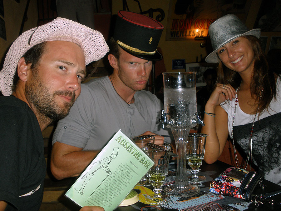 Inside the below-ground Absinthe Bar, it's the norm to wear silly hats. Posing optional.
