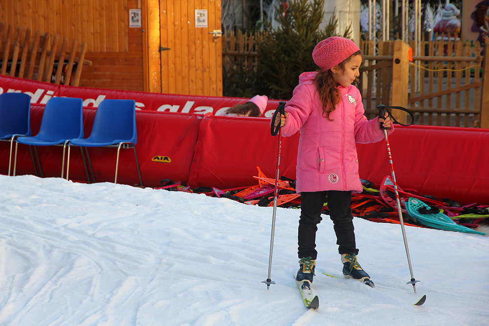 Skis or snow shoes can be hired to walk around the tiny snow track.