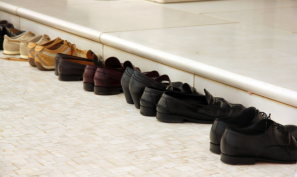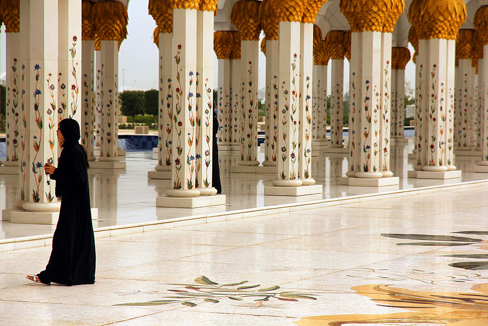 All women visiting the mosque are required to wear an 'abaya' robe.