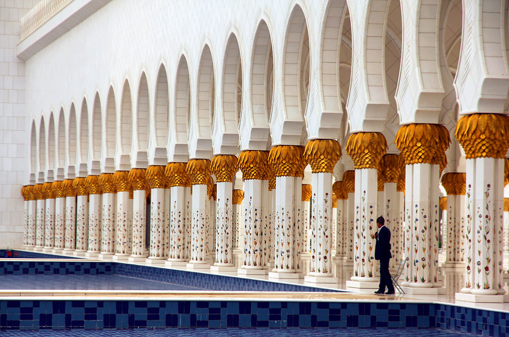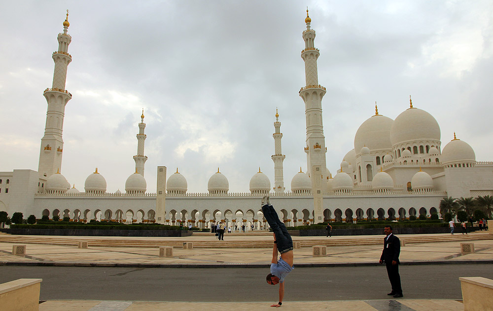 Another one-hander, this time in front of Sheikh Zayed Grand Mosque, the country's largest.