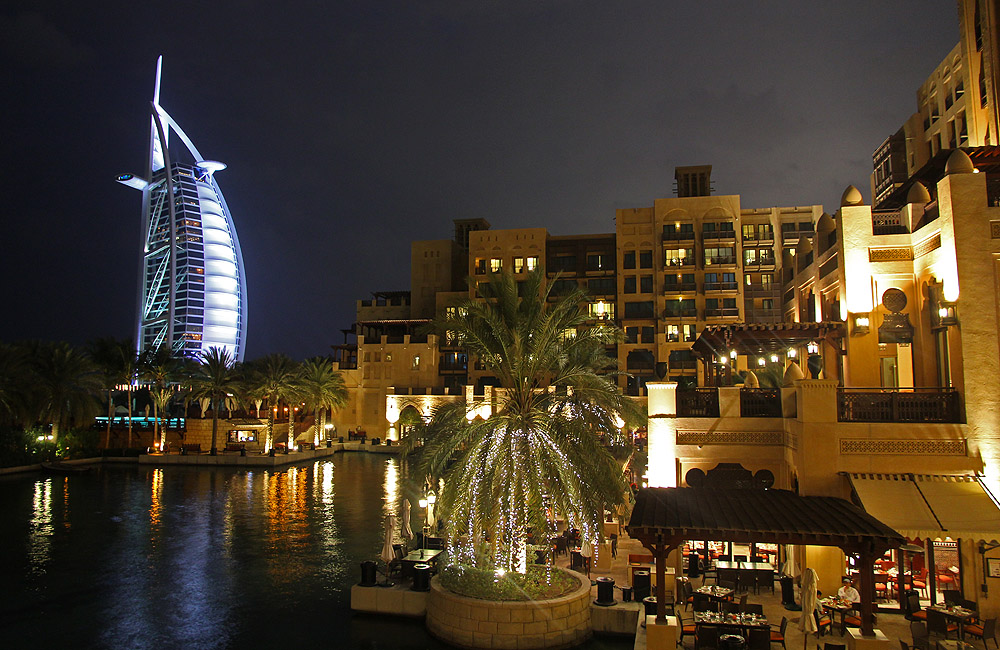 The famous Burj Al Arab hotel, which sits on an artificial island.