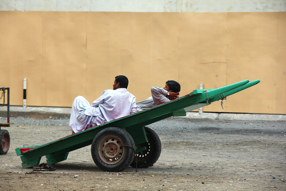 The Emirati nationals are essentially gods amongst men. They're generally easy to spot - the men will be wearing the traditional kandura, an ankle-length white tunic, whilst the women the abaya, a full-body black over-garment (often also covering the face). There exists one set of laws for Emiratis, and another set for the rest of us mere mortals. For instance, their cars (a gleaming collection of brand-new Porsches, Ferraris, Mercedes, BMWs, Cadillac SUVs etc) sport a different number plate than the rest, and will thus avoid any speed camera fines, or indeed provide them with near 100% indemnity in any accident, regardless of whose fault it may be. (Handy UAE travel hint: the Emirati is always right.)