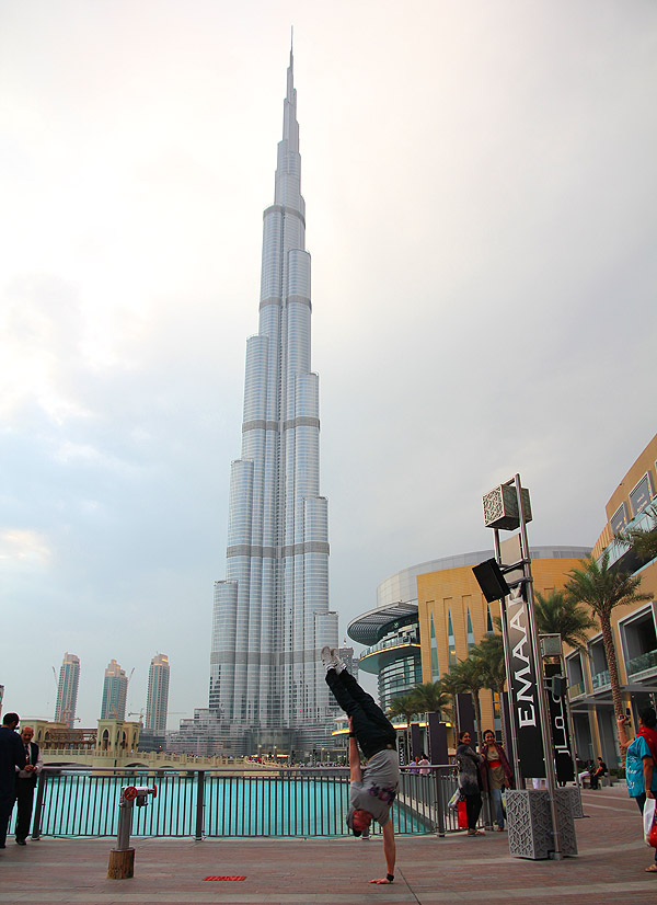 The Emirates one-hander, in front of the Burj Khalifah in Dubai. At a ridiculous 828m high, it's the world's tallest man-made structure. Connected to the tower is Dubai Mall - the world's largest shopping mall.