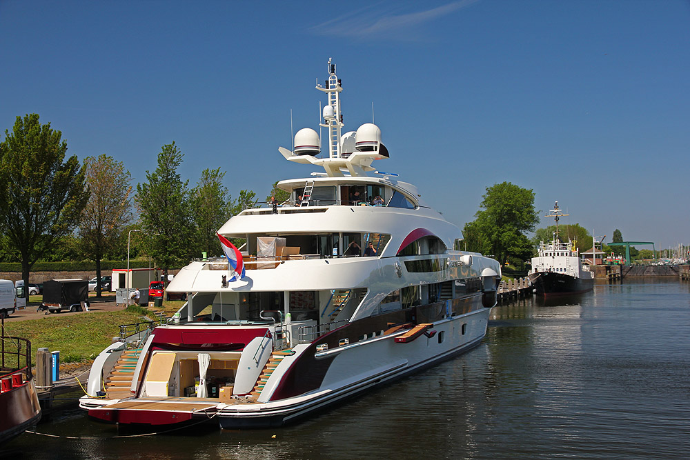 Another recently-launched Heesen yacht (same company as my boat) - the 55m Quinta Essentia. Still loads of work going on on-board. At the moment we're tied up in front of them, until we leave in a few weeks for Gibraltar then France.