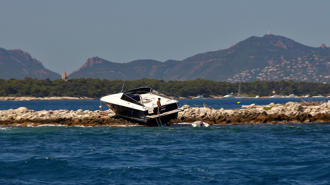 Some skillful boat parking, on one of the islands off Cannes.