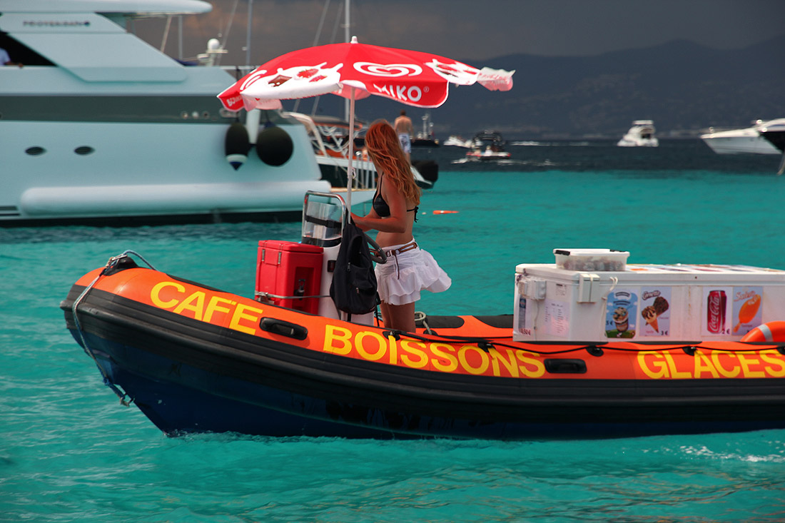 The drinks boat, which cruises around the boats anchored between the islands.