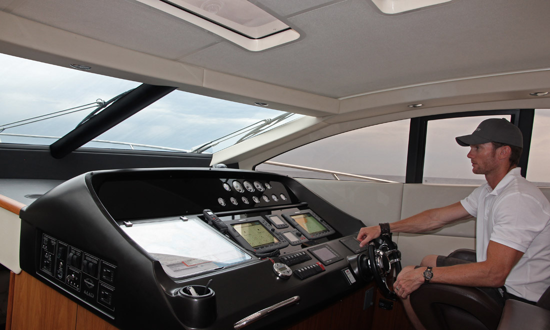 At the helm.