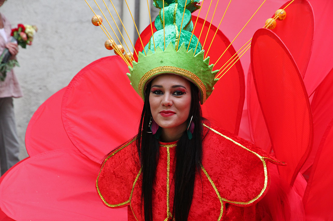 A flower girl from the annual Antibes Flower Show, which dances its way past our front door.
