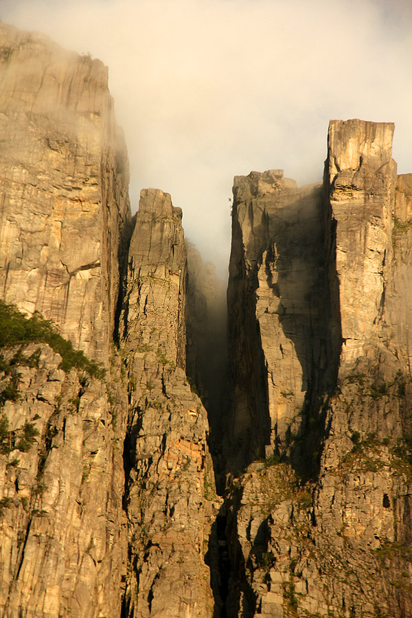Looking up at Pulpit Rock (Preikestolen) - a 25m x 25m rock platform, 600m above the sea.