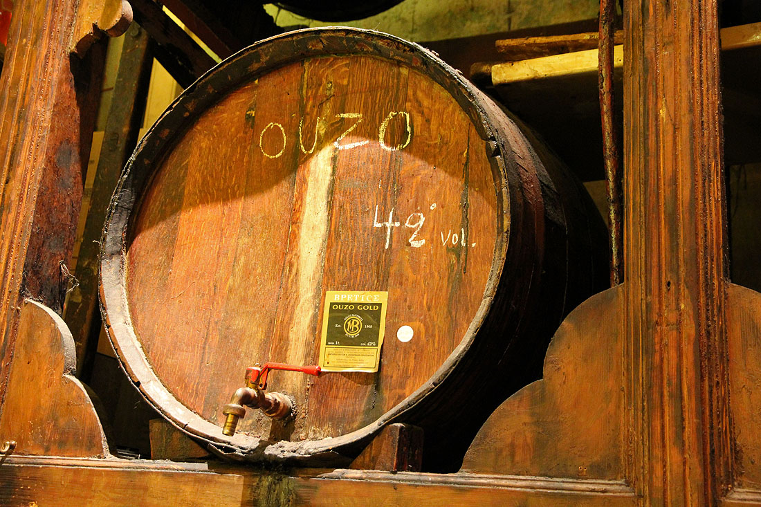 Ouzo (an anise-flavored aperitif), by the barrel.