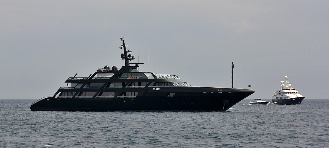 The odd-looking M/Y Main, a 65m Codecasa owned by Giorgio Armani.