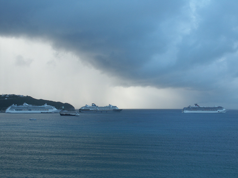 A shot I took while driving to work one morning, looking out over Great Bay at the cruise ships on the pier (or reversing in to dock). It was kinda breathtaking.