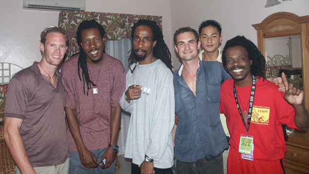 Les and I with Bob Marley's Wailers band, after jamming with them in their hotel room (we played 'I Shot the Sherriff'). This one's a keeper. I look a little odd in this shot, but then, that whole experience was odd!