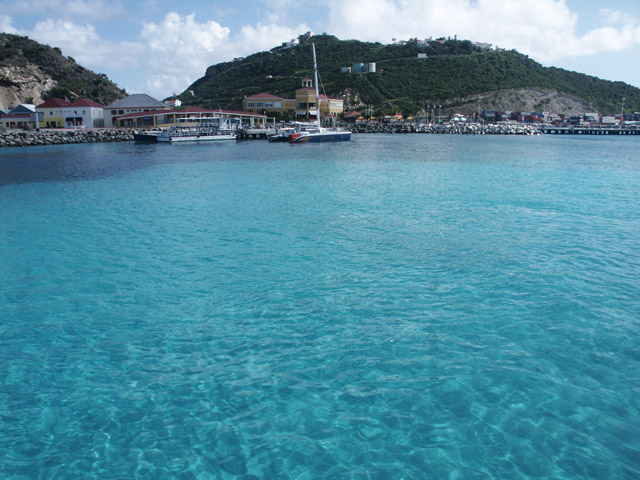 A view of the cruise ship pier (where we pick up the guests), taken while waiting on the boat. One of the Golden Eagle catamarans is waiting to pick up their people.