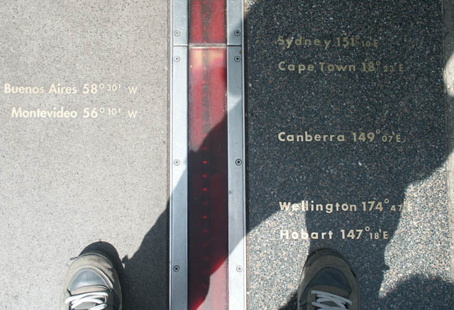 Yesterday I headed out to Greenwich, where I strolled around the bustling village, had lunch in the park and saw the Cutty Sark clipper ship (a tea freighter launched in 1869). Then it was on to the ‘Queen’s House’, which was built in 1635 (!!) for Anne of Denmark, wife of King James I (the White House in Washington is based on this). Next door to that was the National Maritime Museum to check out the history of all things maritime (funnily enough). They had some incredible scale models, as well as hordes of screaming school children. And finally I walked up the hill to the Royal Observatory, the location of the atomic clock keeping Greenwich Mean Time (NZ is GMT + 12hrs) and the Prime Meridian, which describes 0° longitude and divides the globe into its eastern and western hemispheres. And I learnt a new old-English phrase for when you’re going crazy trying to get something done… “I’m workin’ out the longitude”. (it took many many years to calculate it and decide on the correct way to do it). Walking back to the train, I ended up crossing beneath the Thames river, through the Greenwich Foot Tunnel (370m long, 15m deep, and opened in 1902!)