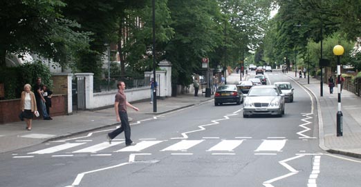 Well my time here in London is drawing to an end, and it's been a blast. On Friday morning I hung around Hayley's empty apartment and watched the movie Serendipity on cable... quite liked it actually - guess I'm a sucker for romance now and then. Then I headed out to try and visit Westminster Abbey - the home of, among other things, the coronation chair - where the kings and queens of England have been crowned since 1066; but the line was huge so I thought "nyaaah" and left. I took a few shots of New Scotland Yard, then jumped onto the tube and checked out Abbey Road, home to the famous Beatles album cover. I got an Aussie dude to take some shots of me crossing the road... man, it's a busy area and there were a fair few tourists all doing the same as me. The famous Abbey Road Studios was unfortunately rather mundane-looking.