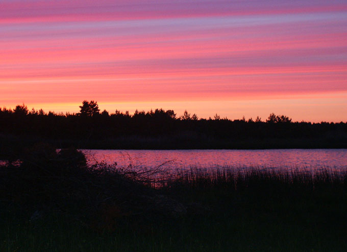 The view from our camp site. Estonia seems to get some spectacular sunsets (albiet rather late in the evening!).