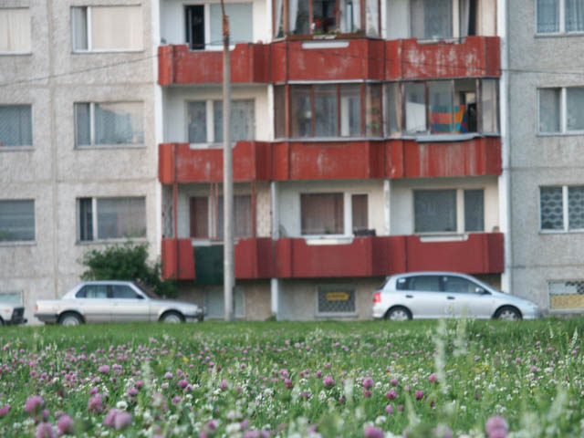 A fairly typical apartment building in the area, which is predominently inhabited by Russians. A fresh coat of paint would do wonders for these buildings.