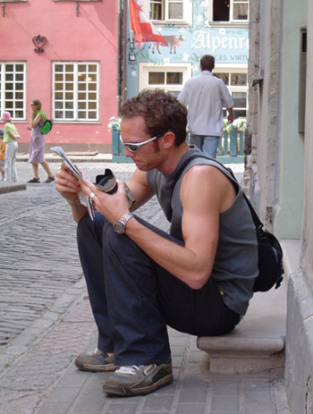 Me, trying to figure out the complex network of cobbled lanes in the old town, using my super-oversize but detailed map. That thing came in handy.
