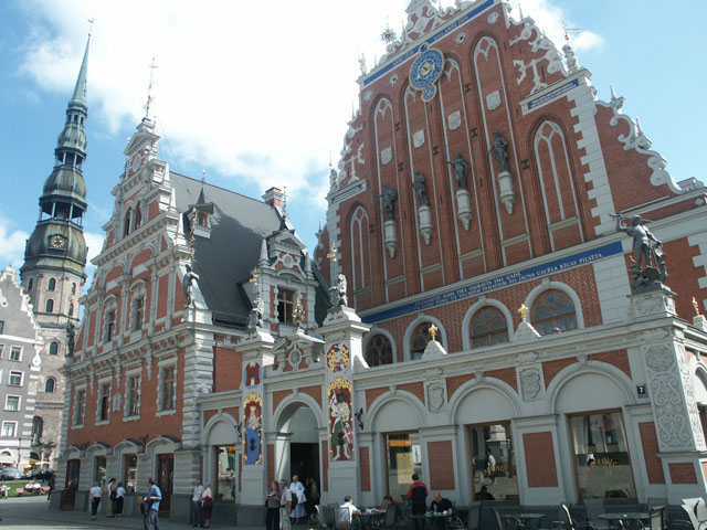 Blackhead's House, standing in a square beside the huge gothic St. Peters church.