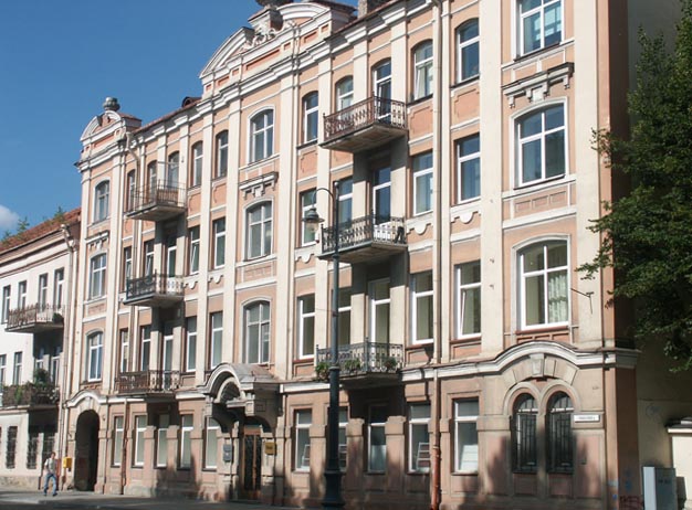One of the many grand old buildings lining Vilnius's shopping area. As far as they go, this one isn't so special, but I just liked the lighting.