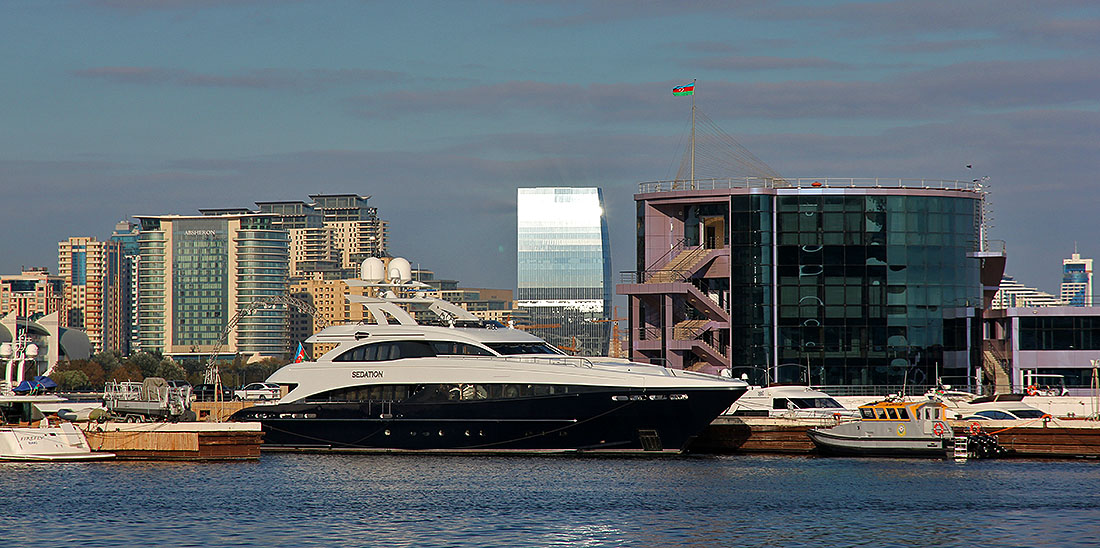 Baku's only resident superyacht, the 44m Heesen "Sedation", gifted to the President (who never uses it).